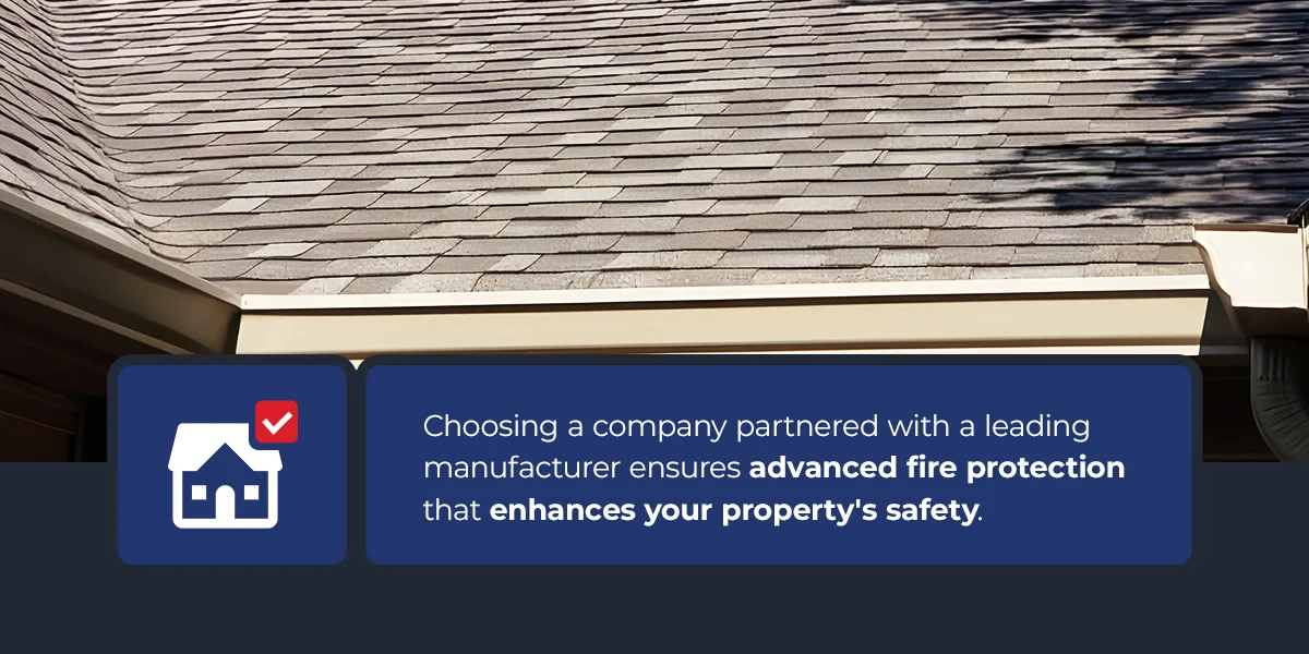 Although the UL 790 rating is a key consideration when purchasing roof shingles, the shingle manufacturer matters, too. Choosing a company that works with a leading manufacturer means you can count on more than just standard fire protection. You get advanced technology that enhances your property’s safety.